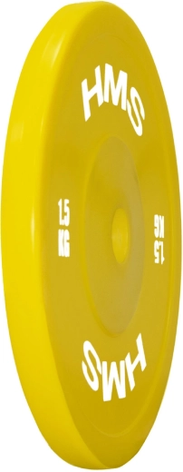 Žluté 1,5kg kotouče HMS umožní okamžitě rozpoznat hmotnost a zrychlit přípravu na sérii. Ideální pro technické nácviky a postupné navyšování zátěže.