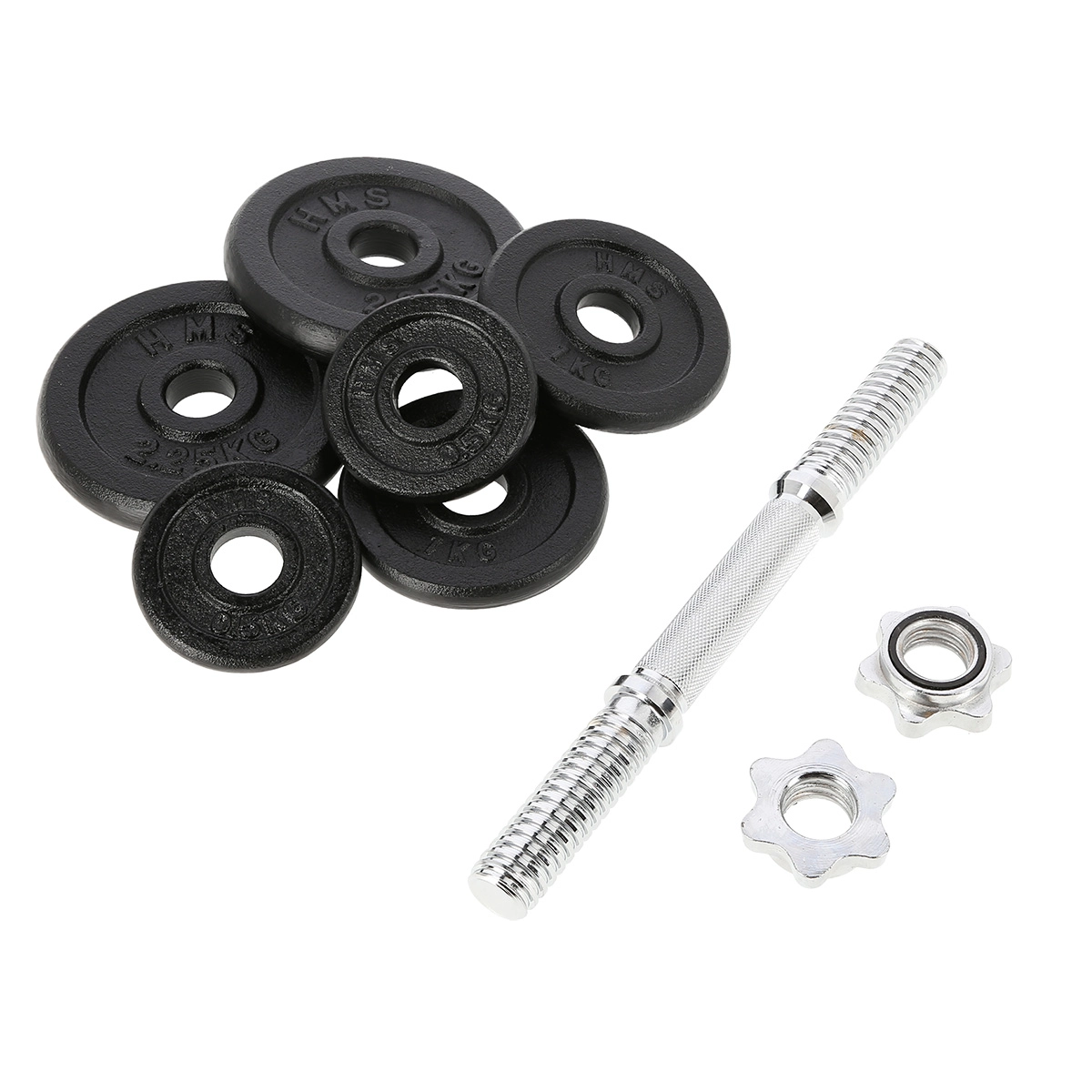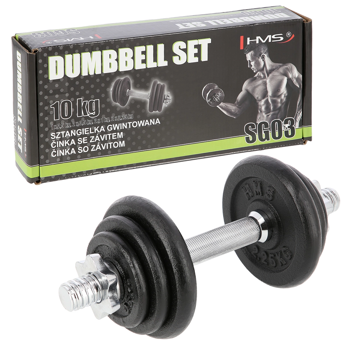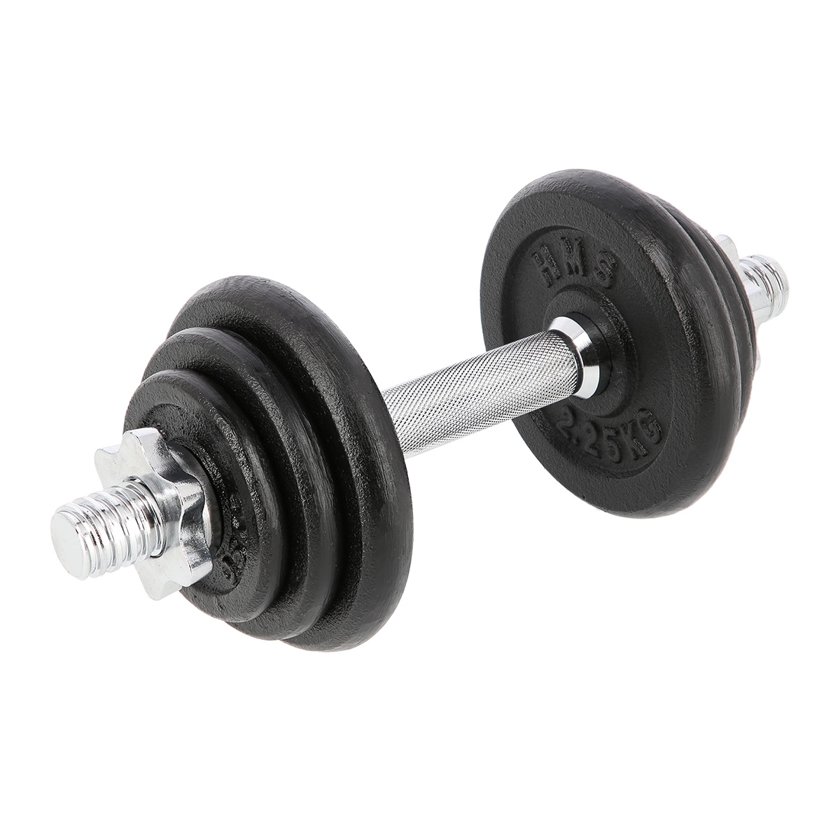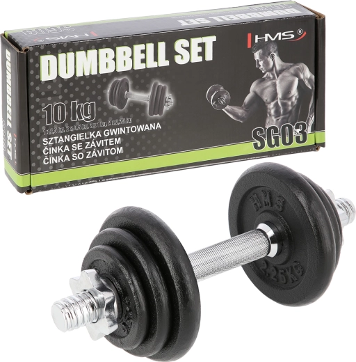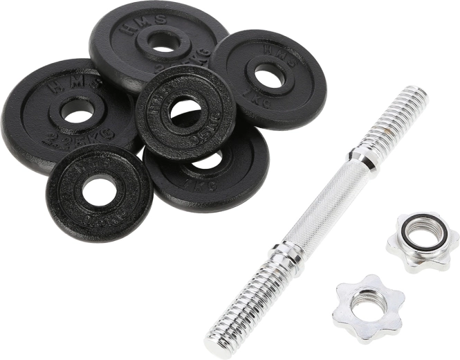 Univerzální jednoruční nakládací činka o hmotnosti 10 kg od značky HMS pro posilování doma i ve fitku. Díky závitovým koncům a hvězdicovým maticím je výměna kotoučů rychlá a především bezpečně zajištěná. Litinové kotouče a drážkovaný, neklouzavý úchop poskytují stabilitu, jistotu a přesné nastavení zátěže pro různé cviky.