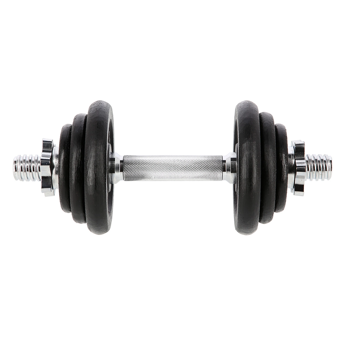 Součástí balení jsou litinové kotouče v několika hmotnostech pro jemnou progresi a efektivní silový trénink. Drážkovaný (knurling) úchop zajišťuje spolehlivou kontrolu i při vyšší zátěži.