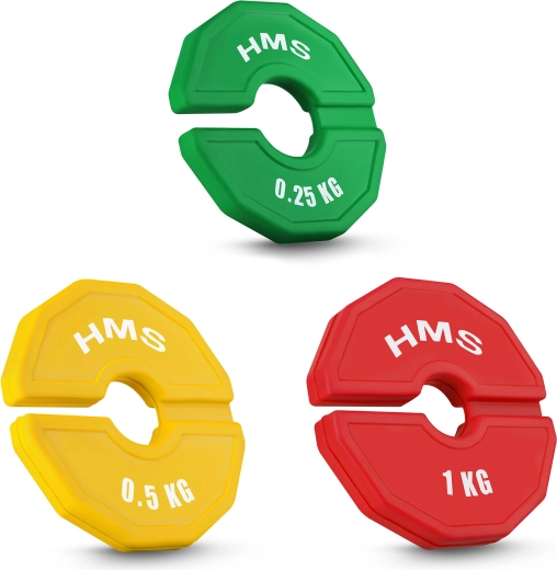 Praktická sada frakčních kotoučů HMS TSN umožňuje plynulé a přesné navyšování zátěže při silovém tréninku. Díky chytrému C/otevřenému designu a flexibilnímu gumovému spoji je snadno nasadíte na osu, kettlebell nebo jednoručku bez sundávání zámků. Odolný gumový povlak chrání vybavení před poškrábáním a barevné značení zajišťuje rychlou orientaci v hmotnostech 0,25 kg, 0,5 kg a 1 kg.