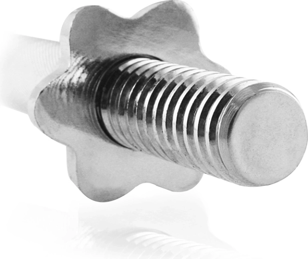 Osa je osazena závitem pro rychlé a bezpečné nasazení kotoučů. Dvojice hvězdicových matic s vnitřním pryžovým těsněním minimalizuje uvolnění zátěže a chrání vybavení. Nosnost 100 kg a hmotnost 6 kg představují ideální poměr pro efektivní silový trénink.