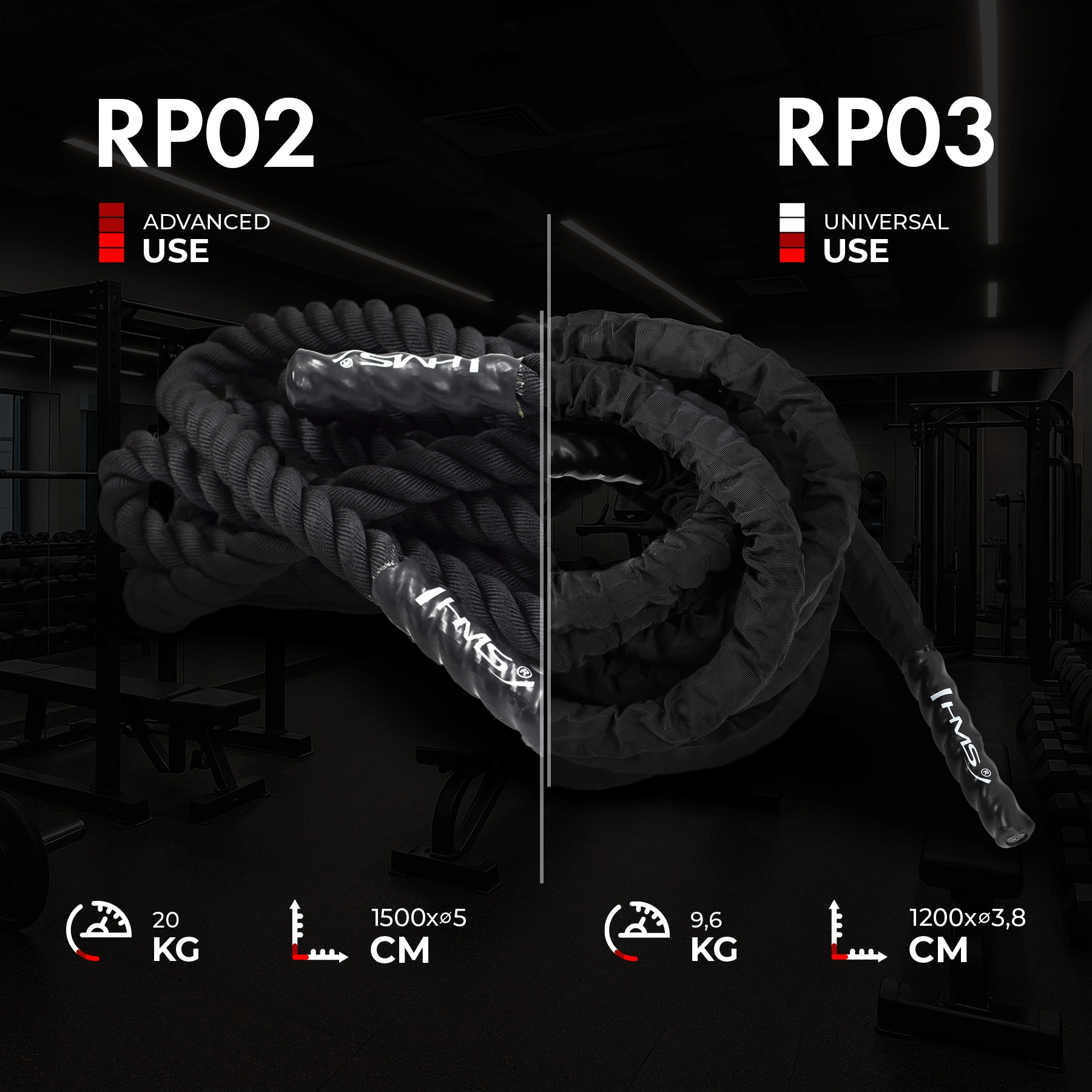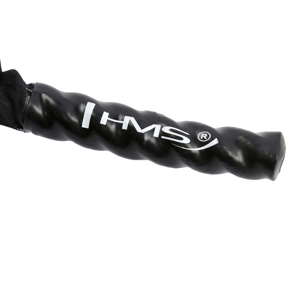 HMS RP03 je battle rope navržený pro náročné tréninky doma i v gymu. Díky kvalitnímu nylonovému opletu a zakončeným rukojetím zvládá dynamické pohyby bez třepení a nabízí jistý úchop i při zpocených dlaních. Skvěle cílí na ramena, paže, střed těla a současně zlepšuje koordinaci, stabilitu a kondici.