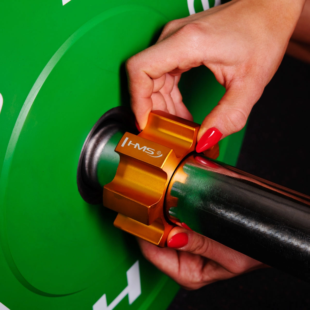 Prémiové uzávěry na olympijskou osu s průměrem 50 mm v elegantní zlaté barvě HMS ZG1500 zajišťují maximální bezpečnost a stabilitu kotoučů. Díky speciálnímu rychloupínacímu systému se snadno a rychle nasazují i sundávají, bez nářadí a bez poškození osy. Odolná hliníková konstrukce je ideální pro intenzivní trénink doma i v posilovně.