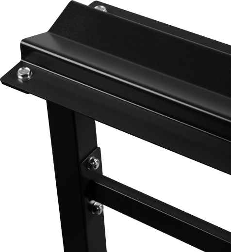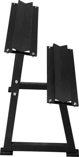 Dvě prostorné police (122 × 22 cm) jsou skloněné pro snadnou a bezpečnou manipulaci s činkami. Čtyři nohy jsou opatřeny gumovými koncovkami, které chrání podlahu a zvyšují přilnavost. Stojan je perfektní volbou pro komerční i domácí využití.