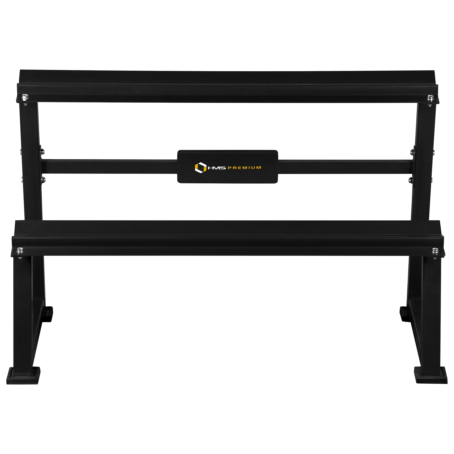 HMS Premium STR20 je stabilní dvoupatrový stojan na činky, který udrží pořádek ve vaší posilovně a zároveň šetří místo. Masivní rám z ocelového profilu 50 × 50 mm a přesné svary zaručují dlouhou životnost a maximální stabilitu i při plném zatížení.