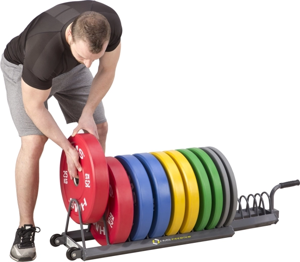 Udržte svou posilovnu perfektně organizovanou. Pojízdný stojan na kotouče HMS Premium WPT01 je vyroben z kvalitní oceli a nabízí kapacitu až 250 kg. Díky promyšlenému členění má 16 pozic pro olympijské kotouče, takže snadno vyskládáte celou sadu závaží a budete je mít vždy po ruce.