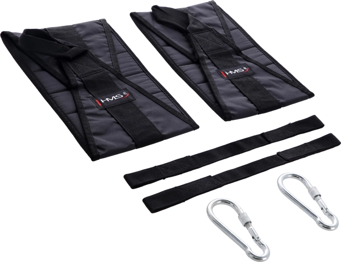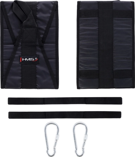 Závěsné popruhy na břicho HMS F4439 jsou ideální pomůckou pro posílení břišních svalů, core i flexorů kyčlí. Jednoduše je pomocí kovových karabin uchytíte na hrazdu, provlečete paže a můžete trénovat s minimálním zatížením ramen a zápěstí. Kvalitní zpracování se silným polstrováním poskytuje vysoký komfort i při náročných sériích.