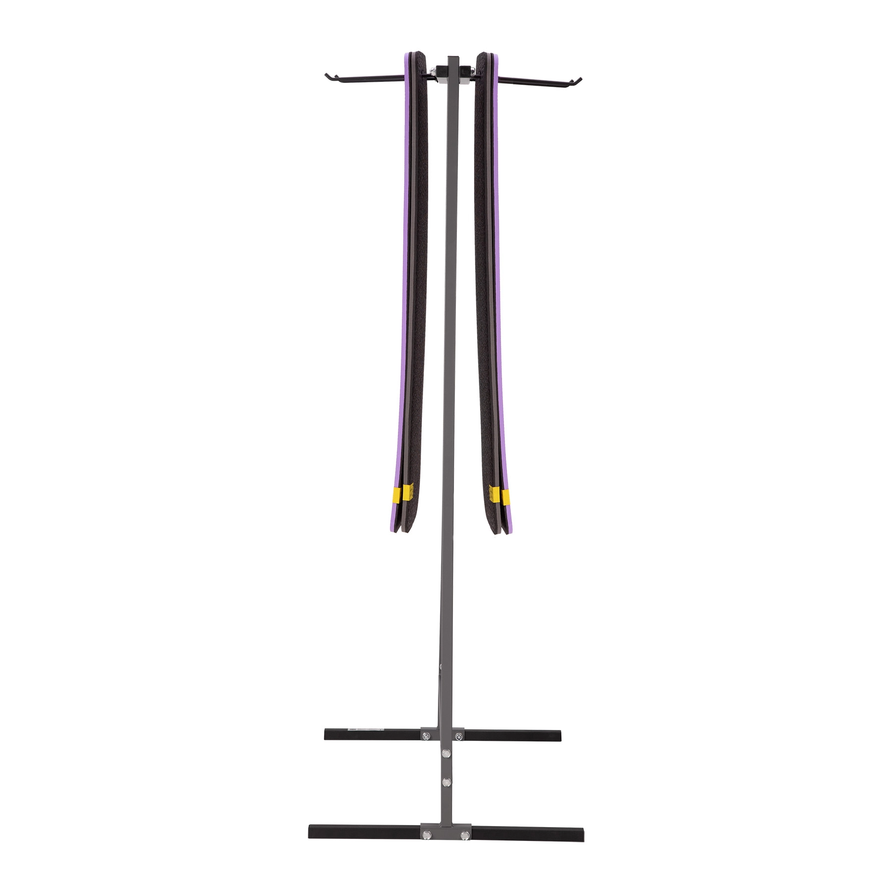 Chytré háčky s nastavitelnou roztečí (4–72 cm) umožní zavěsit různé typy a šířky podložek. Minimalistický design v neutrálních barvách se hodí do každého interiéru – od komerčních fitness a jóga studií až po domácí tréninkové zóny.