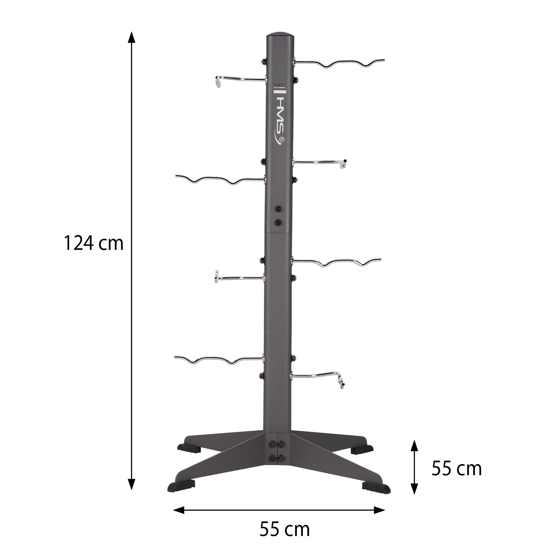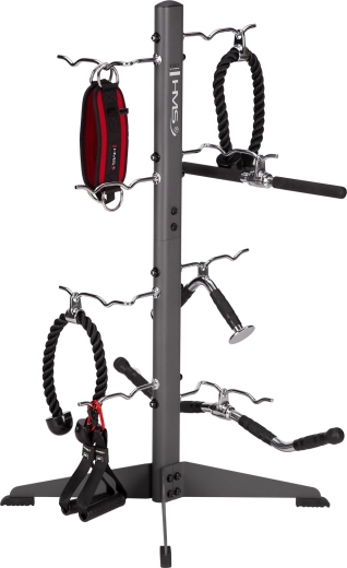 Stojan na příslušenství HMS STR33 je chytré řešení pro organizaci fitness doplňků. Robustní ocelová konstrukce se širokou základnou nabízí vysokou stabilitu, zatímco osm háčků s nosností až 30 kg na každý kus pojme více nástavců současně. Díky promyšlenému tvaru háčků se vybavení bezpečně zavěsí a zůstane vždy po ruce.