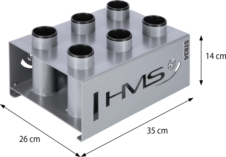 Stojan na olympijské osy HMS STR34 je navržen pro efektivní a bezpečné uložení až 6 os ve svislé poloze. Robustní ocelová konstrukce zajišťuje vysokou stabilitu a dlouhou životnost, zatímco kompaktní půdorys minimalizuje nároky na prostor. Ideální volba pro domácí i komerční použití.