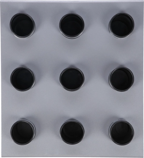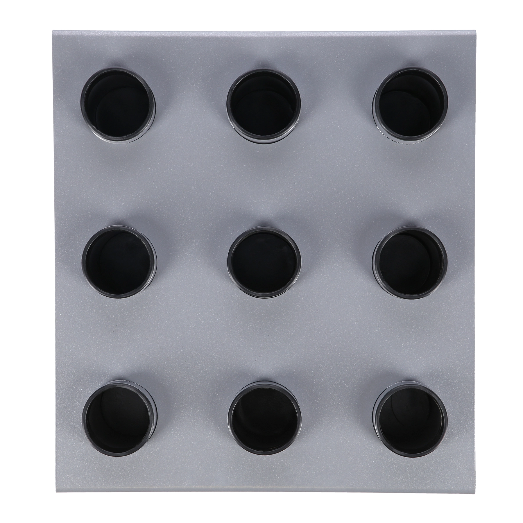 Devět samostatných držáků v mřížce 3×3 umožní rychlou organizaci os a okamžitý přístup během tréninku.