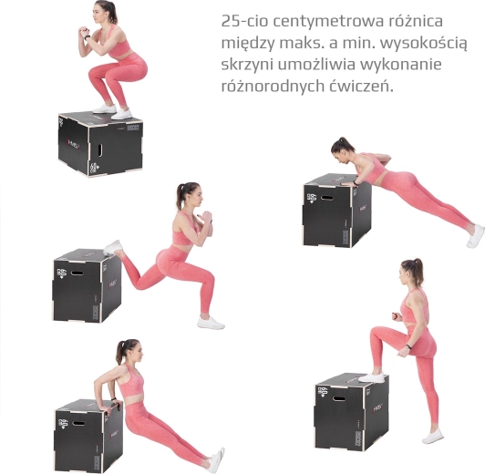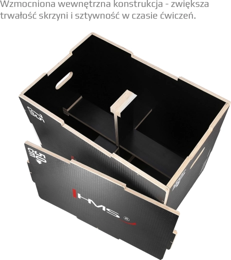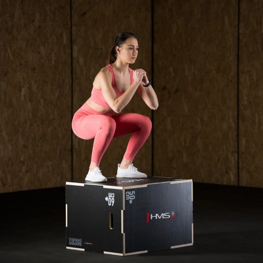 Plyometrický box HMS DSC02 je pevná a stabilní bedna pro skoky a výbušný trénink, která nesmí chybět v žádném fitness centru ani domácí posilovně. Kvalitní 18mm překližka, vyztužená konstrukce a promyšlené zámky ve stylu „puzzle“ zajišťují dlouhou životnost i při častém používání. Tři strany nabízejí různé výšky 75 × 60 × 50 cm, takže snadno přizpůsobíte náročnost cvičení.
