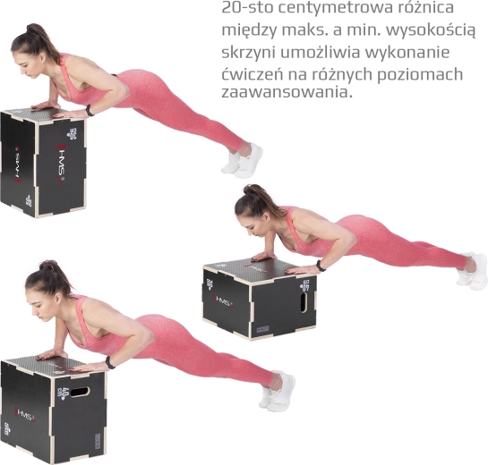Plyometrický box HMS DSC03 je spolehlivá volba pro cross‑training, silovou přípravu i domácí kondiční cvičení. Díky chytré konstrukci „puzzle“ do sebe stěny přesně zapadají, což přináší vyšší tuhost a lepší rozložení zátěže při doskoku. Speciální povrchová úprava omezuje klouzání obuvi a snadno se čistí, takže box zvládne intenzivní provoz ve fitku i v domácí posilovně.