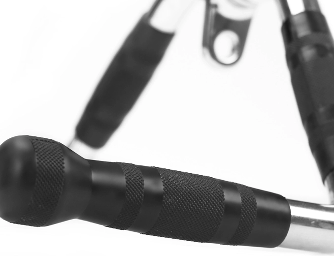 Chromované ocelové madlo s robustním tělem odolá intenzivnímu používání a zaručí stabilitu při každém opakování.