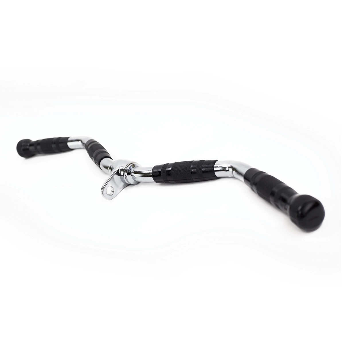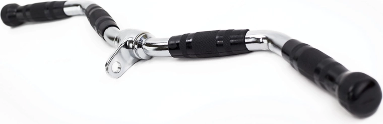 Ergonomicky tvarované zahnutí snižuje napětí v zápěstích a umožňuje přirozenou trajektorii pohybu. Kvalitní kovové provedení s otočným okem zajišťuje hladké zapojení do většiny posilovacích věží a kabelových kladek. Ideální pro domácí i klubové posilovny, kde je vyžadována spolehlivost, komfort a univerzálnost.