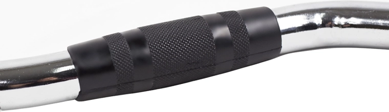 Zakřivený tvar snižuje tlak na zápěstí a podporuje správnou techniku u přítahů, stahování kladky i tricepsových tlaků.