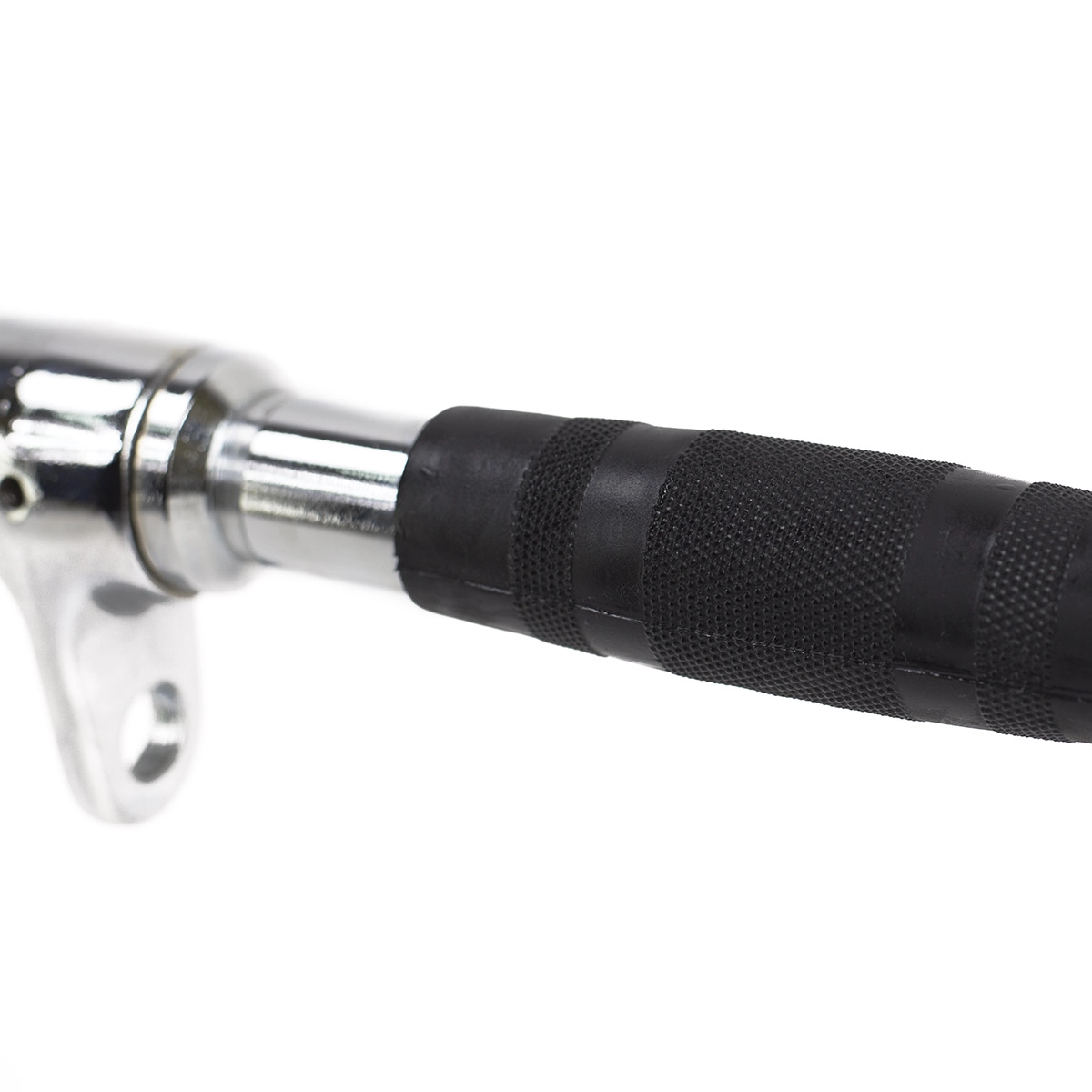 Více poloh úchopu (úzký, střední, široký) umožňuje změnu svalových akcentů oproti rovným adaptérům a přináší pestřejší trénink. Masivní ocelová konstrukce zajišťuje dlouhou životnost a stabilitu i při intenzivním použití v domácí i komerční posilovně.