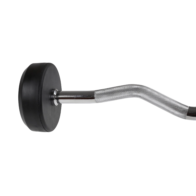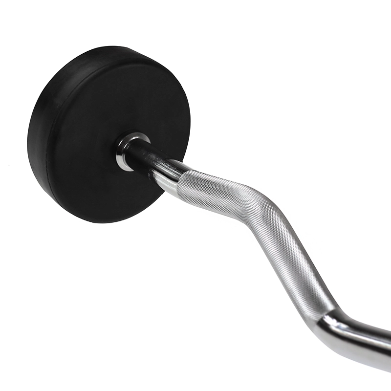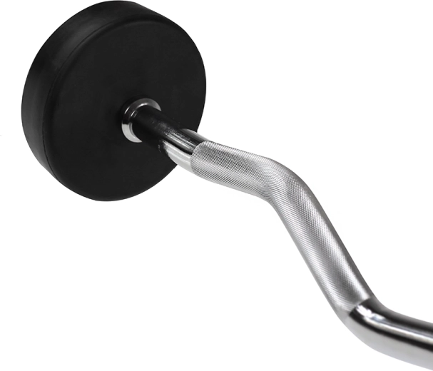 Zahnutá osa poskytuje přirozené úhly úchopu, snižuje namáhání zápěstí a zvyšuje komfort při bicepsových a tricepsových cvicích.