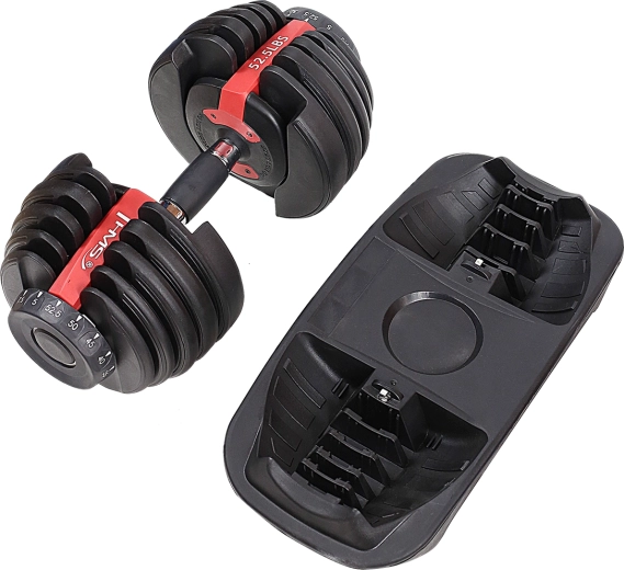 Tato kompaktní nastavitelná jednoruční činka nabízí plynulé nastavení hmotnosti od 5 do 52,5 lbs (2,5–24 kg), takže snadno přizpůsobíte zátěž každému cviku i úrovni pokročilosti. Inovativní mechanizmus s bočními voliči umožní změnit váhu během vteřin bez zdlouhavého přehazování kotoučů.