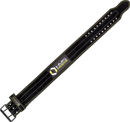 Díky přesnému děrování a kovové přezce s dvojitým trnem opasek spolehlivě drží i při maximálních váhách. Odolné švy a kvalitní zpracování HMS Premium zaručují dlouhou životnost i při intenzivním používání.