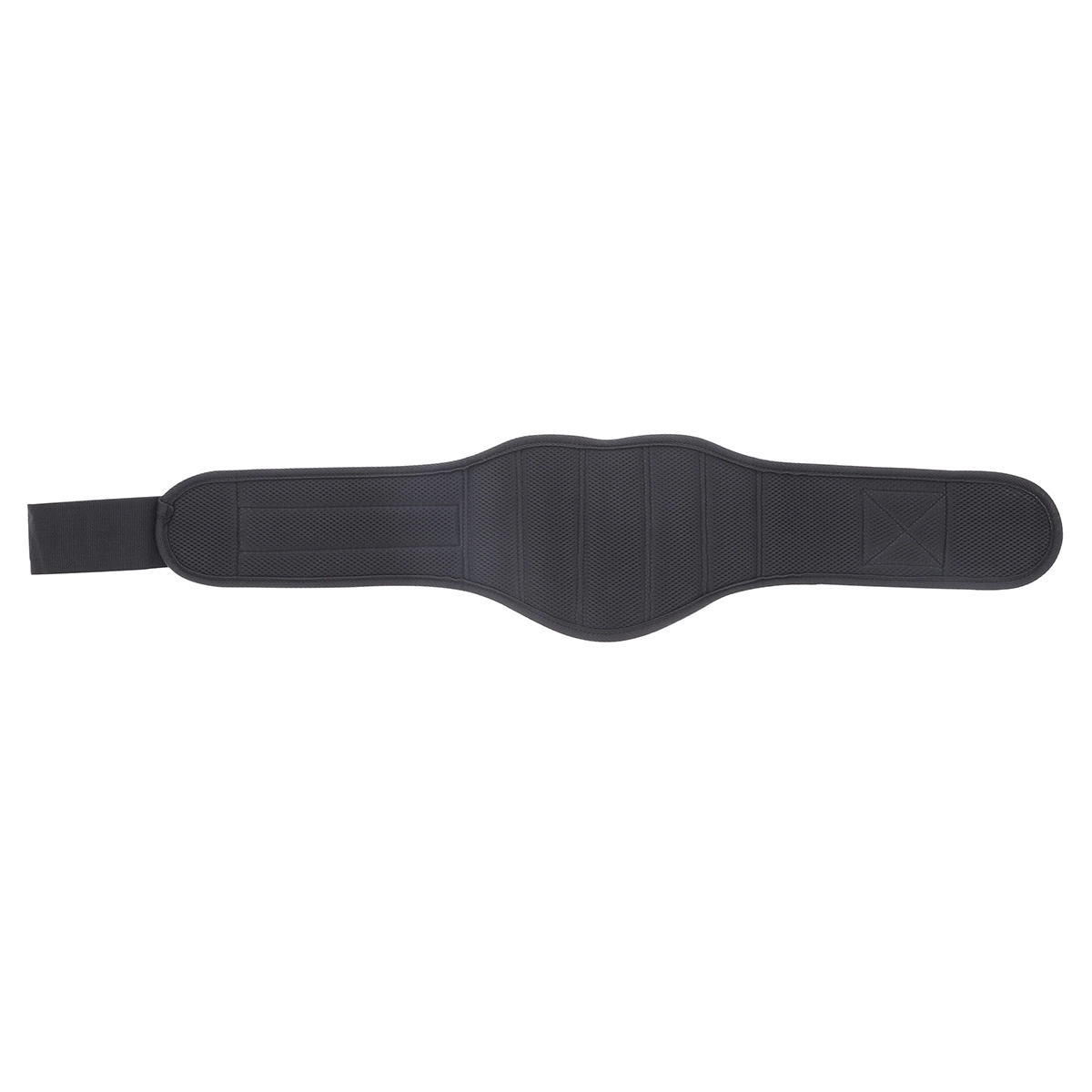 Zádový panel o šířce 19–21 cm stabilizuje bedra a pomáhá udržet správné zpevnění středu těla při dřepech a deadliftech.