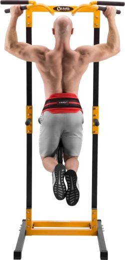 Odolná konstrukce z neoprenu a oceli poskytuje dlouhou životnost a jistotu i při zátěži až 150 kg. Pás se neprověšuje, drží pevně na místě a díky polstrování je pohodlný i během delších sérií. Jednoduché upnutí karabiny urychlí manipulaci mezi sériemi a udrží tempo vašeho tréninku.