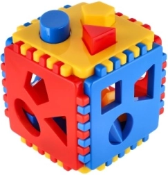 Tato barevná vkládací kostka je ideální didaktická hračka pro nejmenší. Děti do správných otvorů vkládají jednotlivé tvary a trénují koordinaci oko–ruka i logické myšlení. Díky pevnému a zdravotně nezávadnému plastu je kostka odolná a bezpečná.