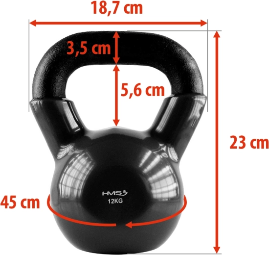 Kettlebell HMS 12 kg je spolehlivá volba pro domácí trénink i osobní fitness rutinu. Litinové jádro s vinylovým potahem chrání podlahu, tlumí hluk a usnadňuje údržbu. Ergonomicky tvarovaný úchop poskytuje bezpečné držení při švihech, dřepech i tlacích nad hlavu.
