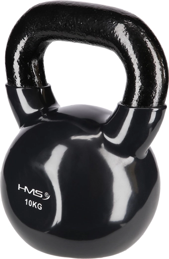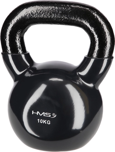 Kettlebell HMS s hmotností 10 kg je vyroben z odolné oceli s vinylovým povrchem, který chrání podlahu a tlumí hluk. Plochá základna udržuje zvon stabilní při odkládání a usnadňuje přípravu na cvik. Texturované, široké držadlo poskytuje jistý úchop pro technické provedení cviků.