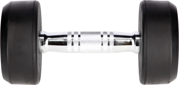 Pevné litinové jádro pokrývá silná vrstva gumy, která tlumí nárazy, snižuje hluk a chrání podlahu i činku před poškozením.