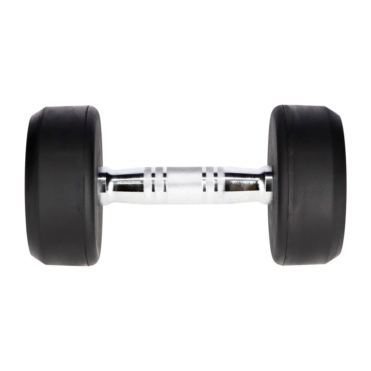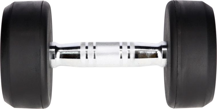 Litinové hlavy potažené silnou vrstvou gumy chrání činku i podlahu, tlumí nárazy a snižují hlučnost při odkládání.