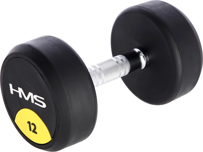 Jednoruční činka 12 kg HMS HG Pro je navržena pro intenzivní silový trénink. Litinová hlava je chráněna silnou vrstvou gumy, která tlumí nárazy, snižuje hlučnost a chrání podlahu i samotnou činku. Ergonomická, soudkovitě tvarovaná rukojeť z chromované oceli s výrazným vroubkováním zajišťuje jistý a pohodlný úchop i při náročných sériích.