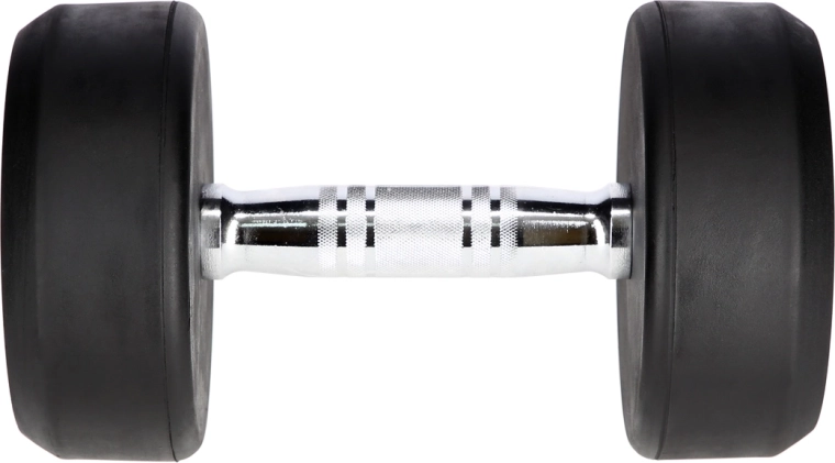 Litinové jádro pokryté silnou vrstvou gumy chrání činku i podlahu, snižuje hluk a zvyšuje životnost v náročných podmínkách posilovny.