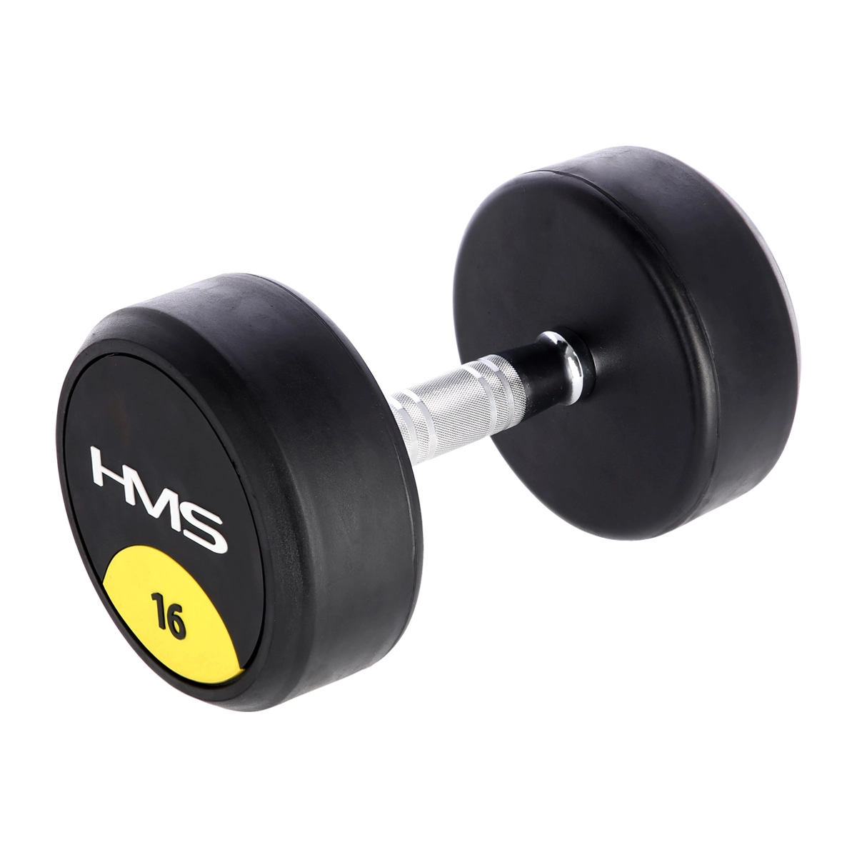 HMS HG Pro 16 kg je všestranná pogumovaná jednoruční činka pro sílu, hypertrofii i kondiční trénink. Litinové jádro s robustním gumovým pláštěm tlumí hluk a chrání jak činku, tak podlahu. Soudkovitá, chromovaná a vroubkovaná rukojeť zajišťuje jistý a pohodlný úchop i při náročných sériích.