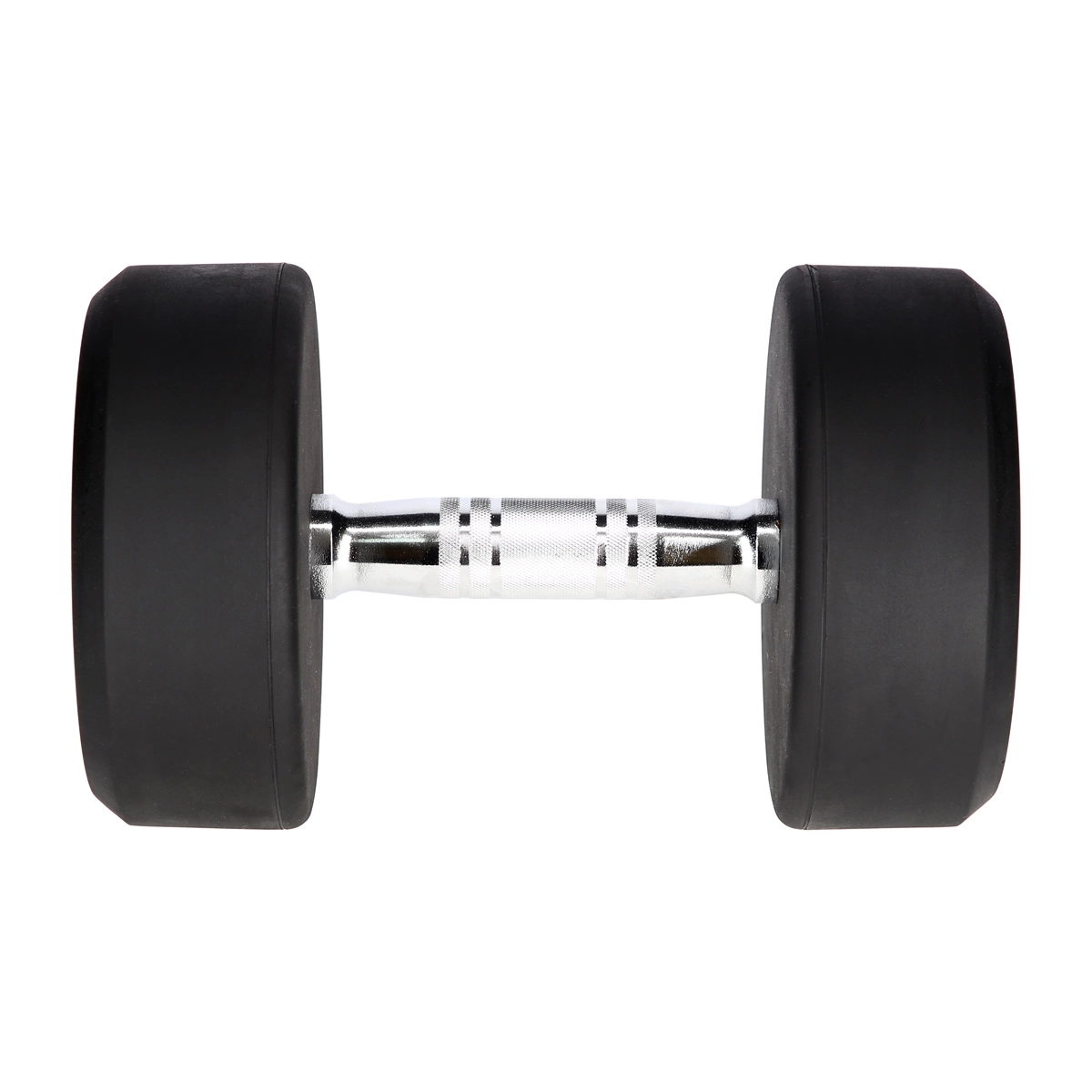 Silná vrstva gumy na litinových hlavách chrání činku i podlahu, omezuje hluk a prodlužuje životnost vybavení.
