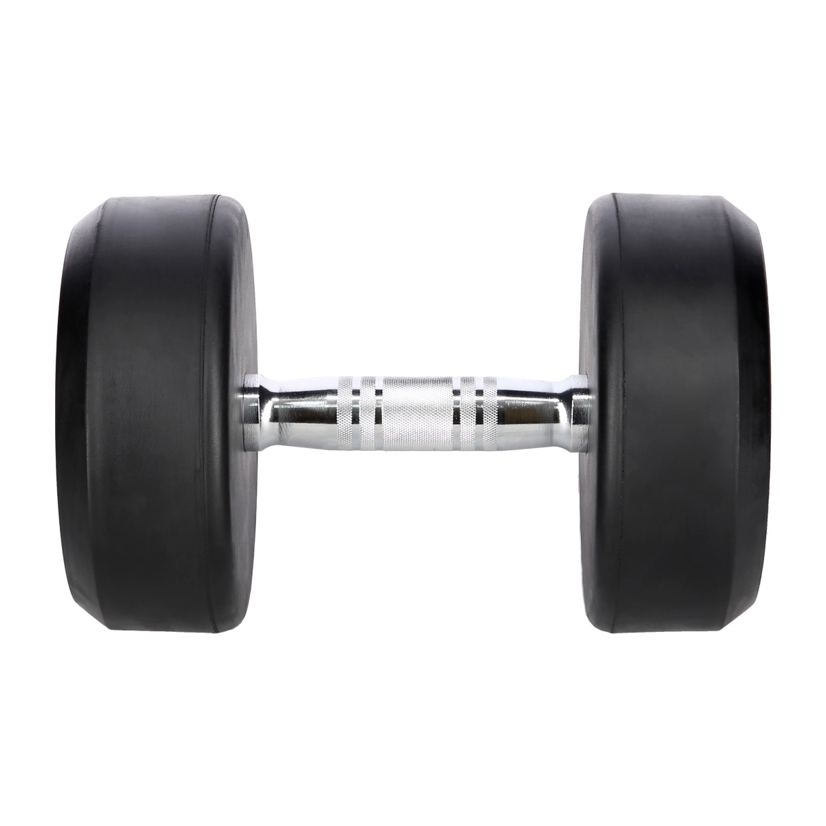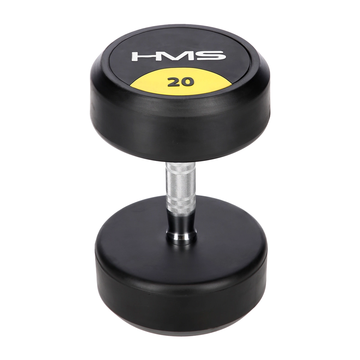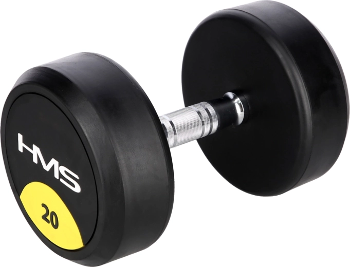 HMS HG Pro 20 kg je pevná, fixní jednoruční činka navržená pro každodenní použití. Litinová závaží jsou pokryta silnou vrstvou gumy, která tlumí nárazy, snižuje hluk a chrání vybavení i podlahu. Knurlovaná rukojeť z chromované oceli s ergonomickým, lehce soudkovitým profilem zaručuje bezpečný úchop i při náročných sériích.