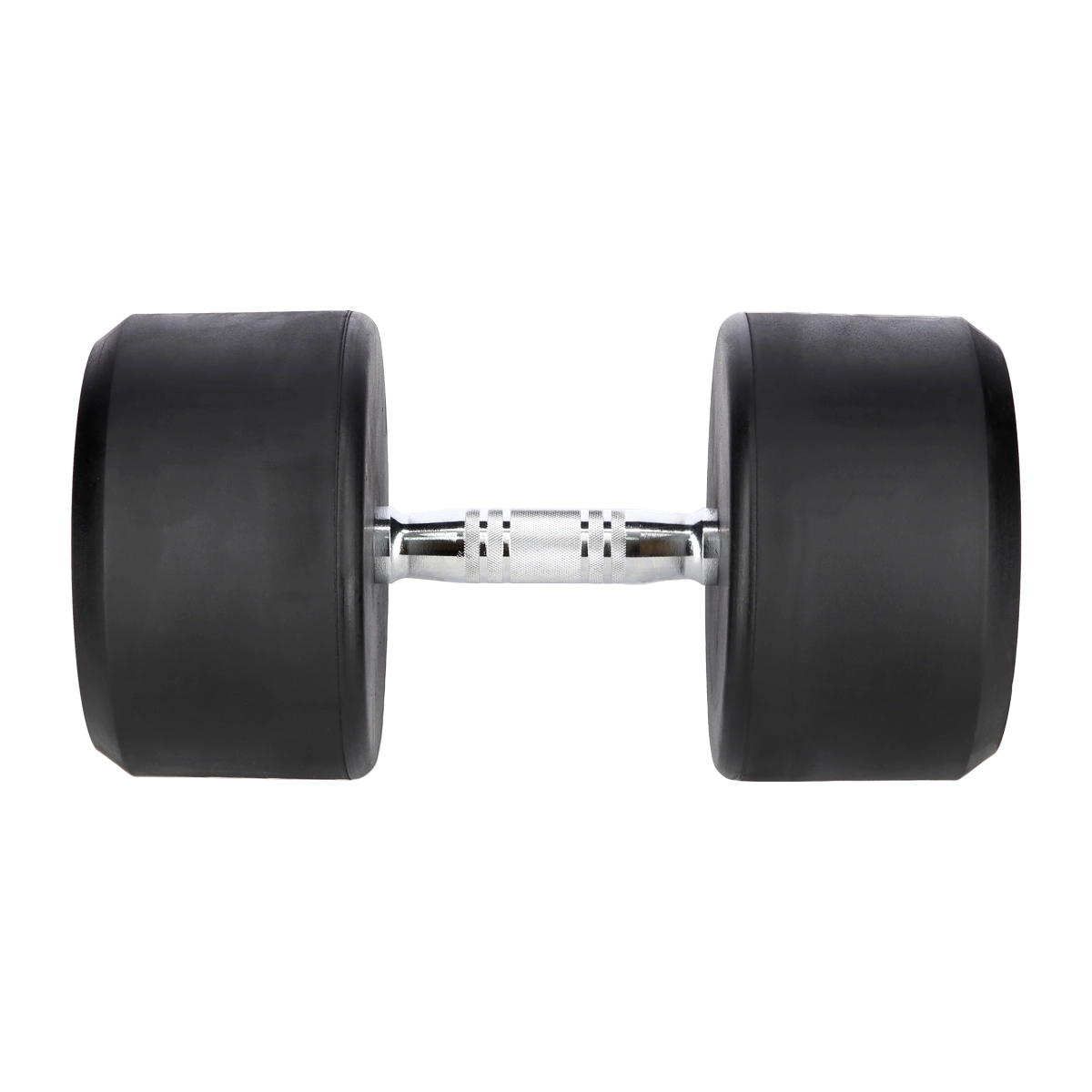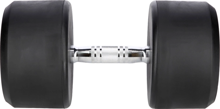Litinové hlavy potažené silnou vrstvou gumy snižují hluk, chrání podlahu a zvyšují životnost činky i vybavení posilovny.