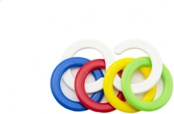 Chrastítko kousací kroužky je ideální hračkou pro malé děti. Jeho lehký design a pestré barvy zajišťují, že si ho miminko snadno oblíbí.