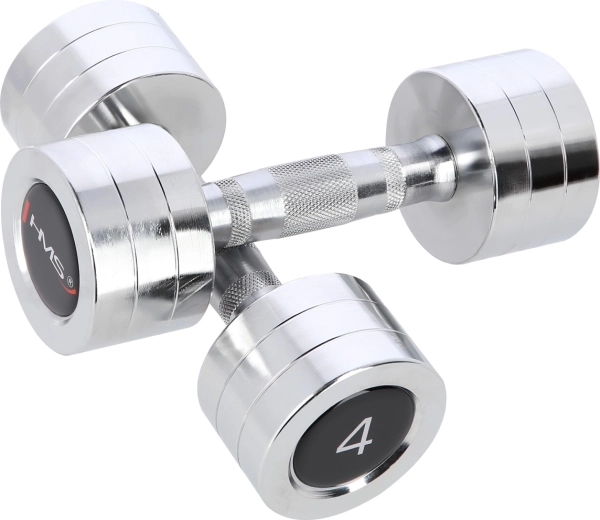Univerzální sada jednoručních činek HMS 2 × 4 kg je ideální pro posílení paží, ramen, hrudníku i zad. Těla činek jsou vyrobena z vysoce kvalitní chromované oceli, která je odolná proti opotřebení a oxidaci. Knurlovaná (mřížkovaná) rukojeť zajišťuje bezpečný a jistý úchop i při intenzivním tréninku.