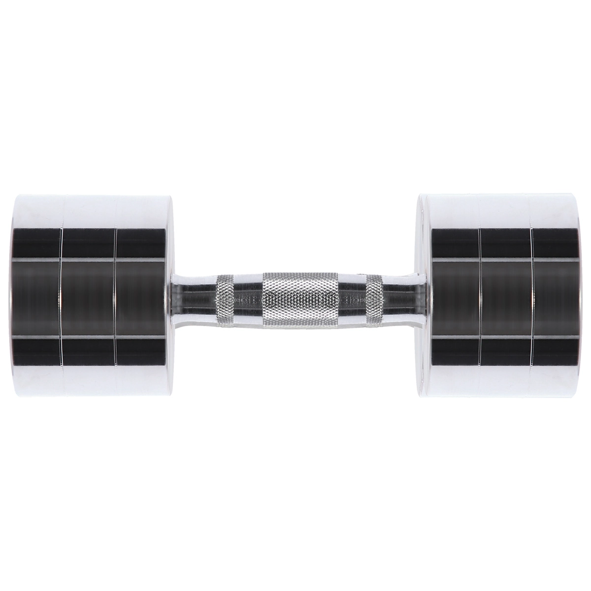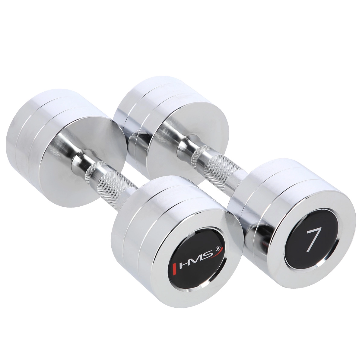 Pár elegantních, plně kovových jednoruček z chromované oceli pro domácí i profesionální trénink. Nabízí vysokou odolnost, protiskluzovou rukojeť s mřížkováním a přesnou hmotnost 7 kg na každé čince. Ideální na posilování celého těla, tvarování paží, ramen a hrudníku.