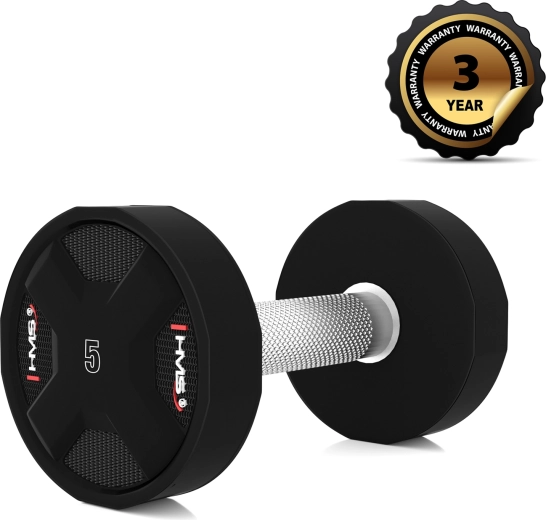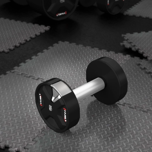 Jednoručka HMS HPC 5 kg je navržena pro náročné uživatele, kteří vyžadují spolehlivost a komfort při každém opakování. Polyuretanové zakončení chrání podlahu, tlumí hluk a udržuje činku v perfektním stavu i při častém používání. Chromovaná, rýhovaná rukojeť zajišťuje pevný a jistý úchop bez sklouzávání.