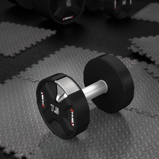 Činka HMS HPC je navržena pro náročné tréninky a dlouhodobé používání. Polyuretanové zakončení je vysoce odolné proti opotřebení, pádům i otřesům, neprodukuje nepříjemný zápach a snadno se udržuje. Chromovaná, rýhovaná ocelová rukojeť poskytuje jistý a pohodlný úchop i při zpocených dlaních.