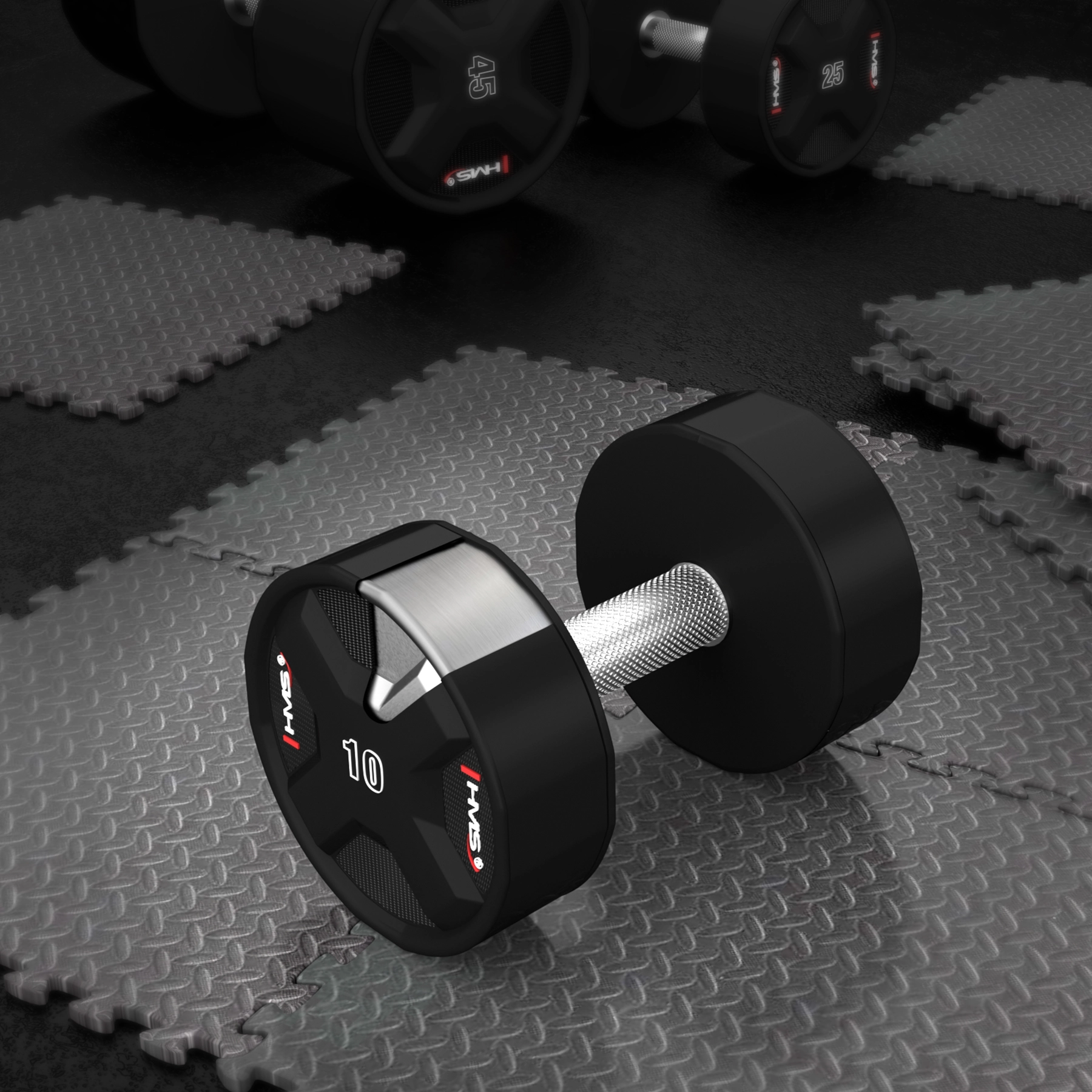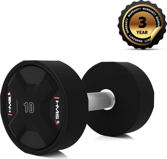 HMS polyuretanová činka 10 kg je navržena pro intenzivní silový trénink. Kombinuje ocelové jádro s litým polyuretanovým pláštěm, který je odolný vůči pádům, otřesům a opotřebení, nešíří nepříjemný zápach a snadno se udržuje. Precizně rýhovaná chromovaná rukojeť zajišťuje jistotu úchopu i při náročných sériích.