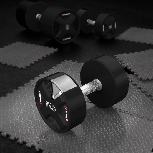 Činky řady HMS HPC kombinují robustní ocelové jádro a litý polyuretan pro maximální odolnost vůči nárazům a opotřebení. Knurlovaná, chromovaná rukojeť zajišťuje jistý a pohodlný úchop, takže se můžete plně soustředit na výkon u tlaků, přítahů i bicepsových zdvihů.
