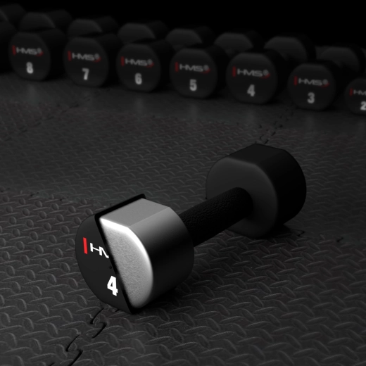 Jednoručky HMS HPT jsou navrženy pro každodenní trénink. Ocelové jádro potažené termoplastickým polyuretanem (TPU) zajišťuje vysokou odolnost vůči nárazům a poškrábání, zároveň tlumí hluk a chrání podlahu. Černé provedení s jasným označením hmotnosti dodává činkám moderní vzhled a usnadňuje rychlý výběr zátěže.
