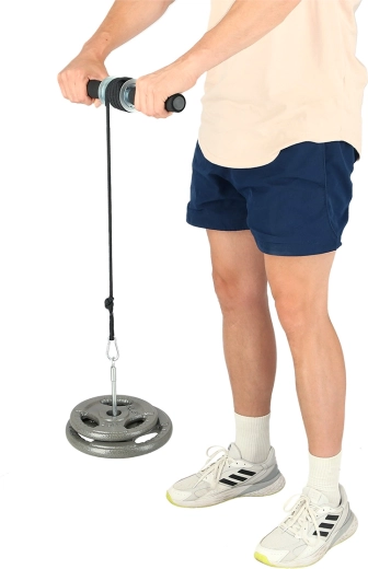 Otáčením rukojetí navíjíte lanko se zátěží a zatěžujete svaly v plném rozsahu pohybu pro maximální efekt.