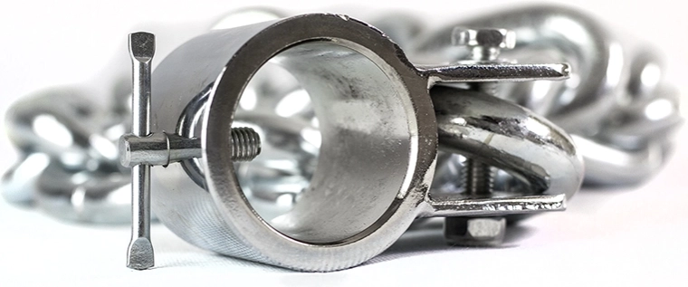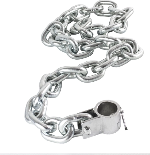 Praktické uchycení umožňuje snadné nasazení na olympijskou hřídel. Stabilní spojení drží řetěz bezpečně při každém opakování.