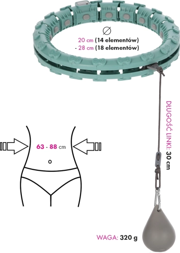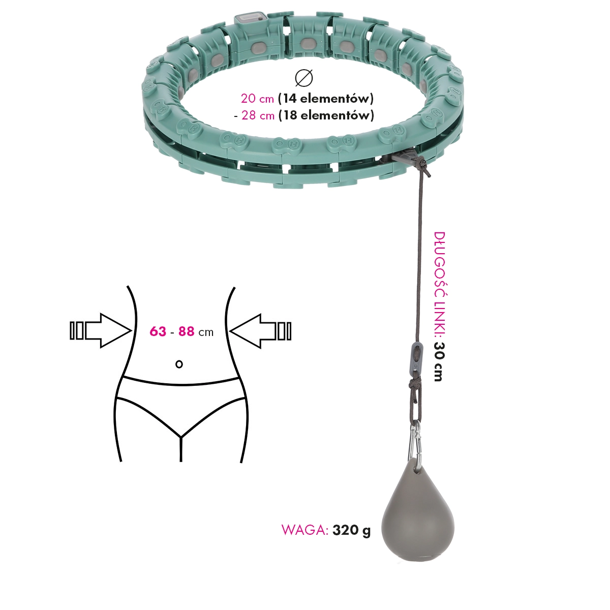Chytré masážní hula hoop je tvořeno z modulárních dílů, které jednoduše zacvaknete podle svého obvodu pasu. Vnitřní masážní výstupky příjemně stimulují oblast břicha a boků a současně tlumí vibrace. Díky rotujícímu závaží na ložiscích získáte plynulý pohyb a vyšší tréninkovou účinnost, kterou určujete rychlostí kroužení a délkou provázku.