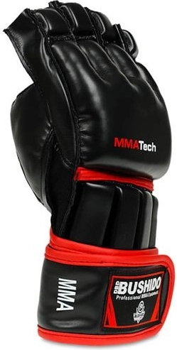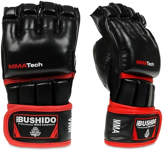 Odolné MMA rukavice DBX Bushido ARM-2014a z kvalitní zesílené syntetické kůže pro trénink i sparing. Nabízí otevřený prstový design pro jistý úchop, polstrování kloubů pro bezpečnější údery a dvojité omotání zápěstí se suchým zipem pro stabilní podporu. Termoaktivní ventilace udržuje ruce v suchu a pohodlí, zesílení u palce snižuje riziko poranění.