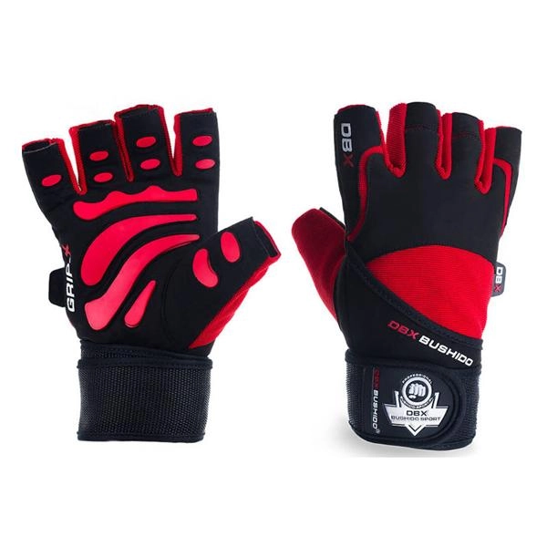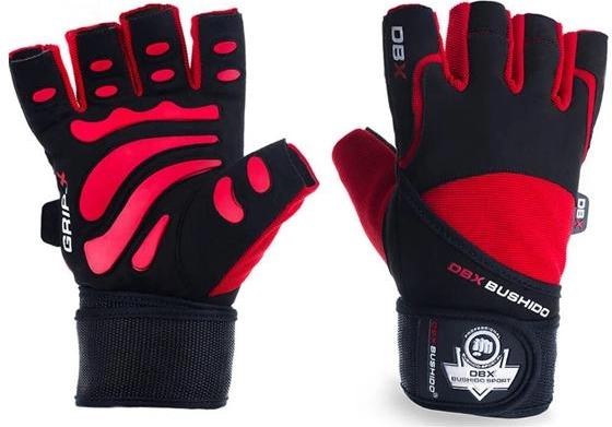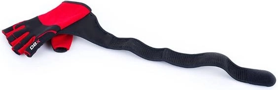 Široký elastický pás se zdvojeným omotáním kolem zápěstí a dvojitým suchým zipem poskytuje nadstandardní stabilitu a podporu při tlacích, tazích i práci s hrazdou. Rukavice v černo‑červeném provedení jsou vyrobeny z kombinace syntetické kůže, polyesteru a gumy, takže dobře sedí, nekloužou a vydrží dlouhodobé použití.
